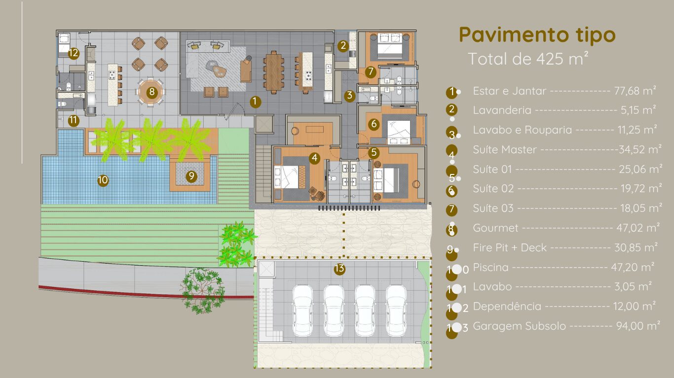 📐 425m² de área construída